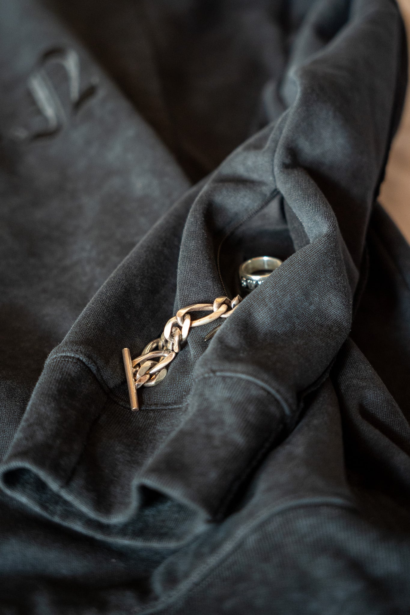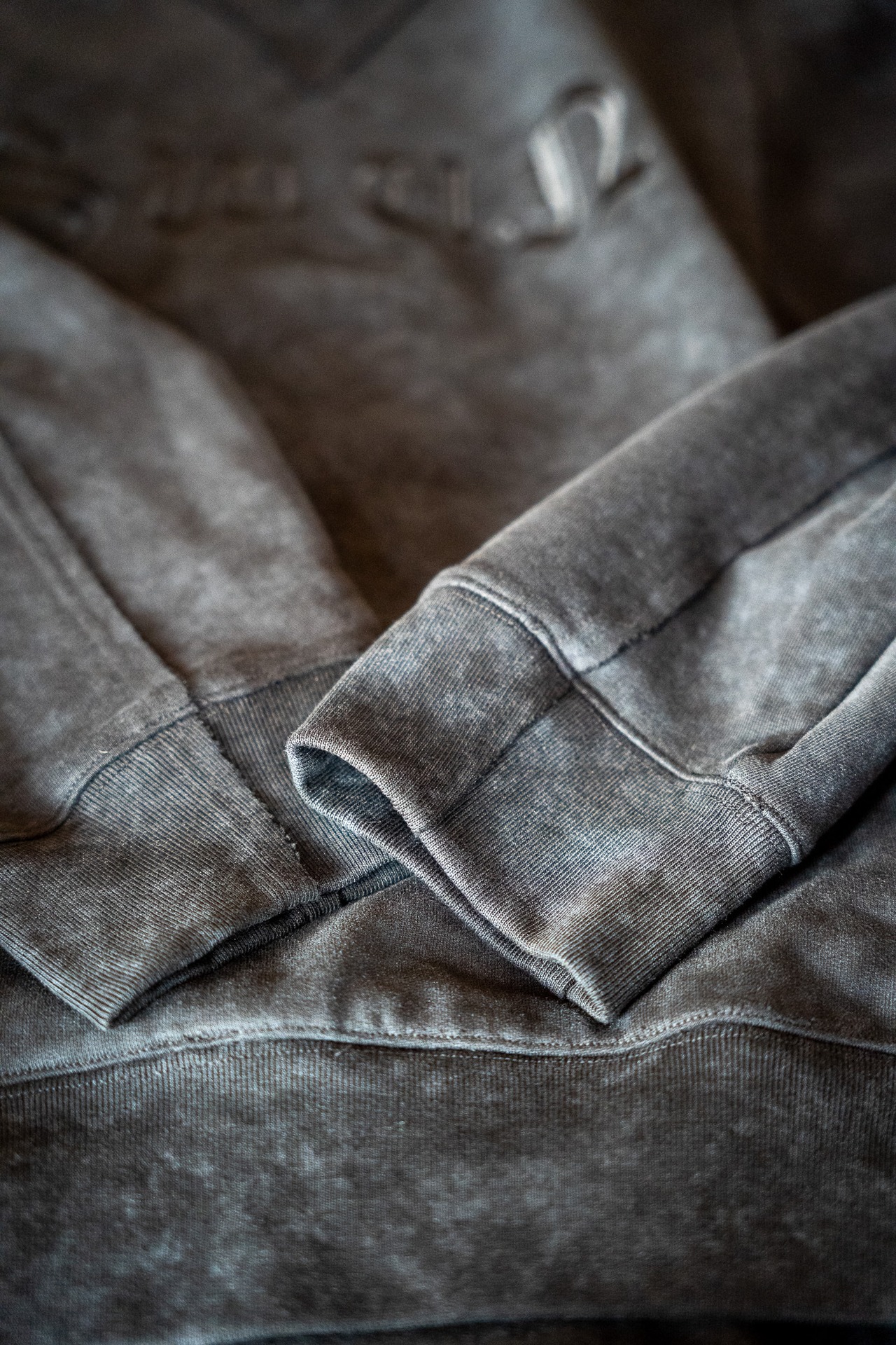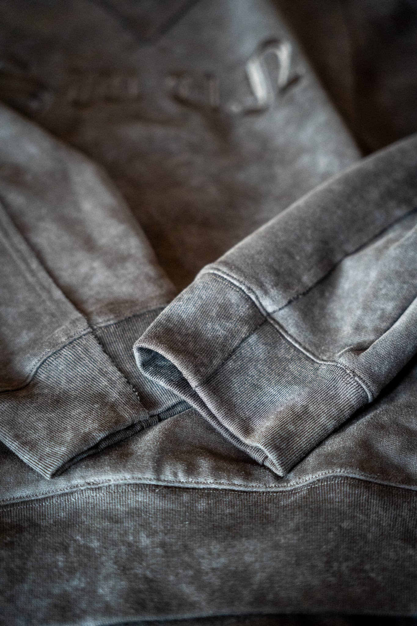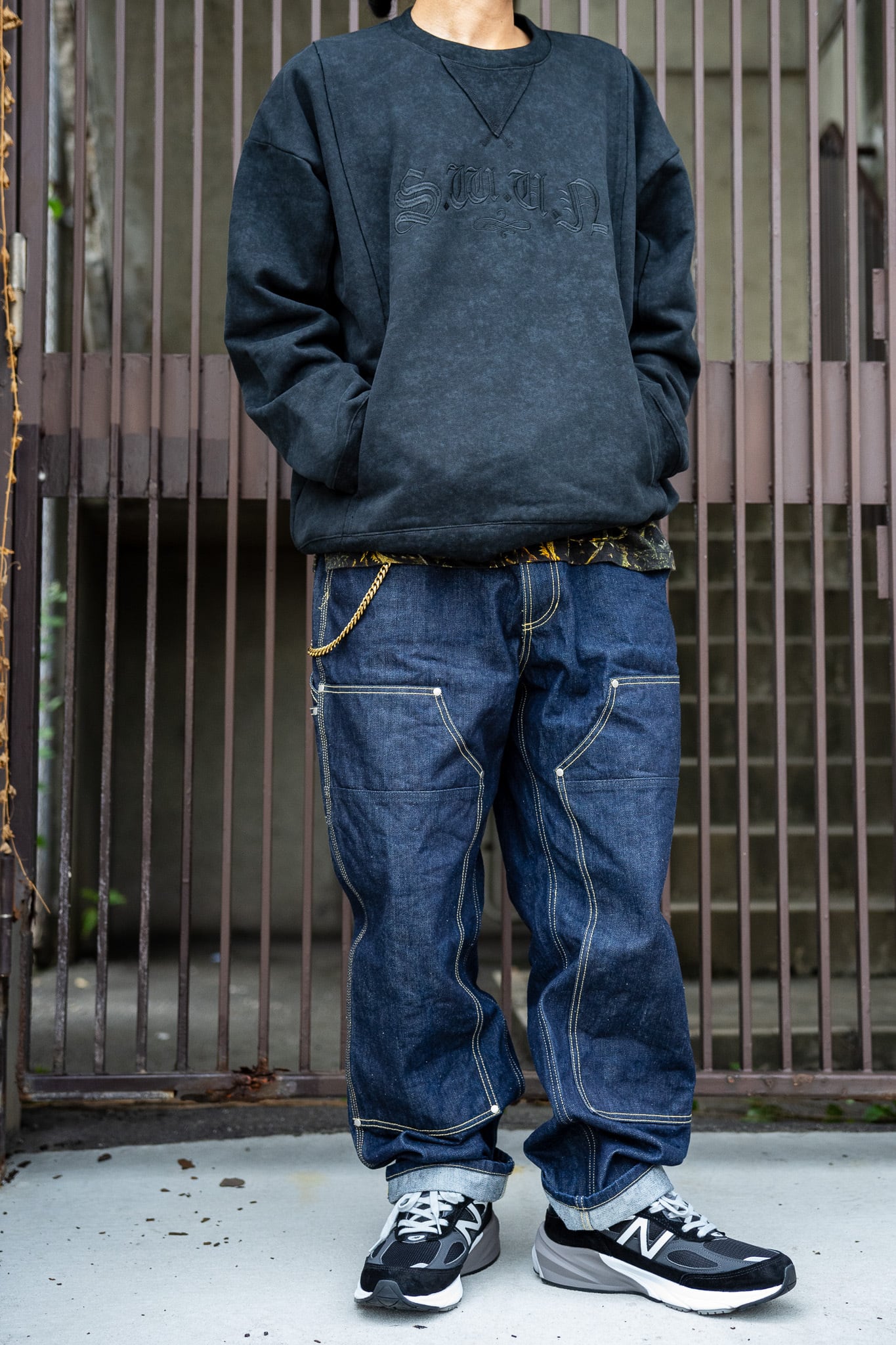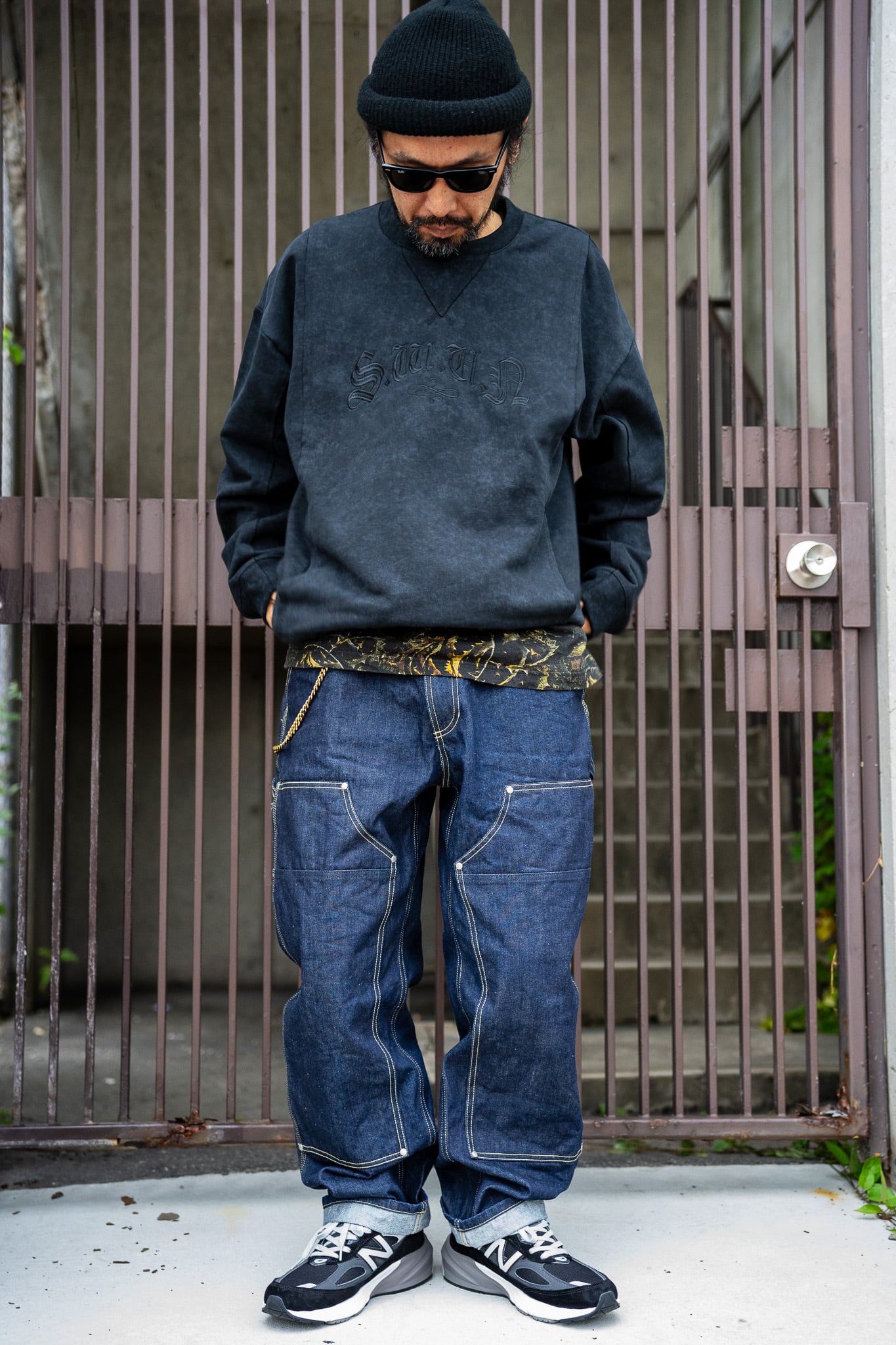 前作より大幅にアップデートをしており、ろうけつ染め加工を施された生地を使用することによりヴィンテージ感も感じさせる独特な風合いを表現。生地を再構築したようなクレイジーなディテール。360度どの角度から見ても拘りのあるオリジナルアイテムとなっておりCrewneckにはHoodieと同じマフポケットがついています。